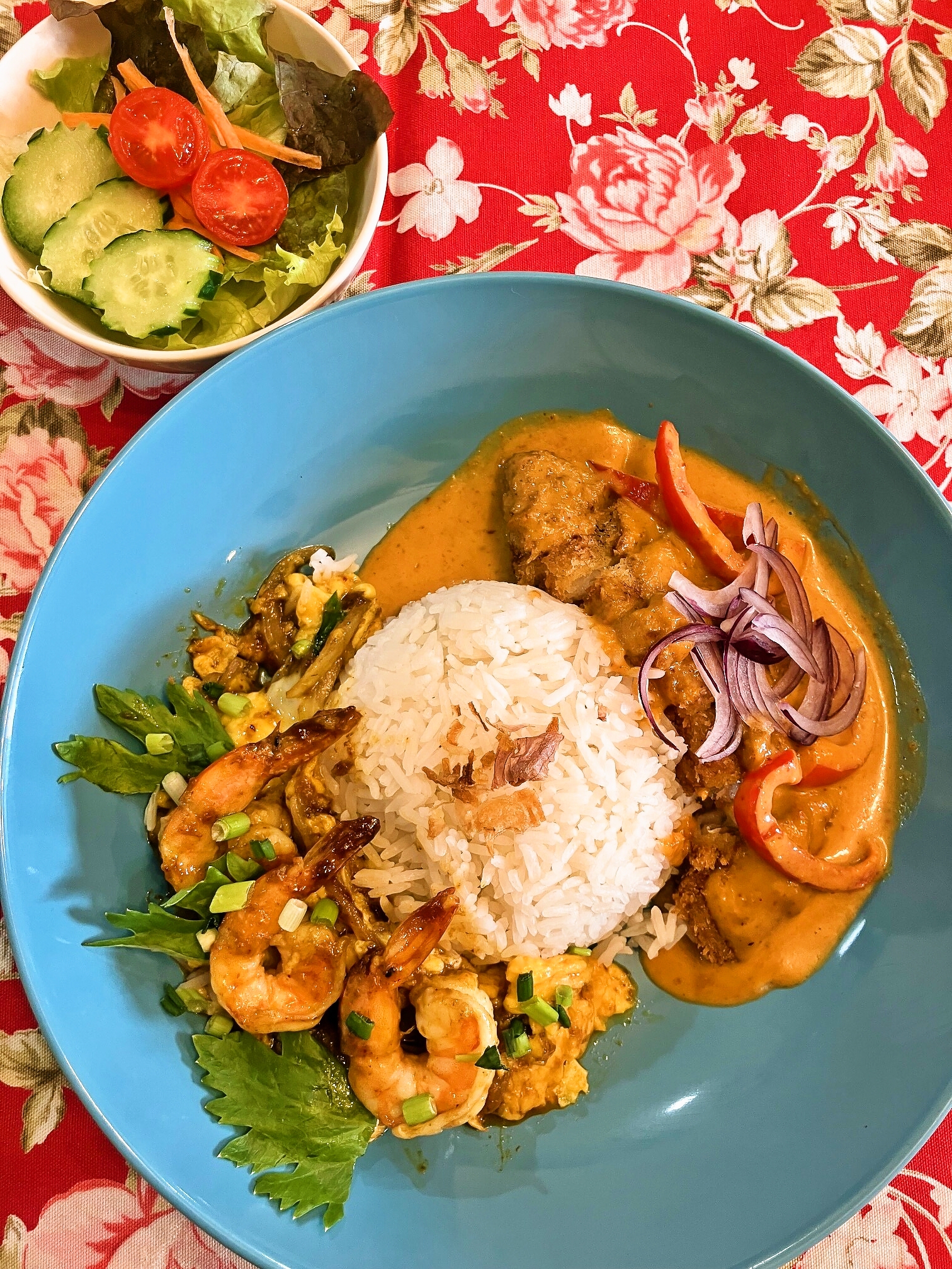 Curry combo kafeayam special (kung pad pon curry & paneng curry w/mini salad)¥1480
